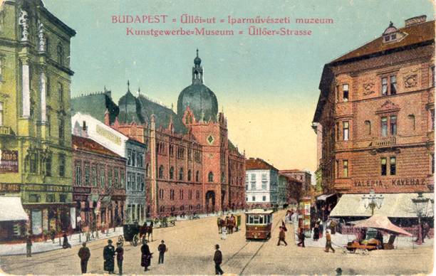 Az Üllői útnak az Iparművészeti Múzeum és a Ferenc körút közötti szakaszán állt 39., 41., 43. számok alatti házai (a díszes tetőzetű, emeletes sarokház a 43.). A kezdő képek elkészültének ideje pontosan beazonosítható: 1897. Ebben az évben villamosították az Üllői út korábbi lóvasútját, illetve ennek az évnek a végén húnyt el a képet készítő Divald Károly. A kép jobboldalán - a József körúti sarkon - látható Valéria kávéház 1890-től működött.